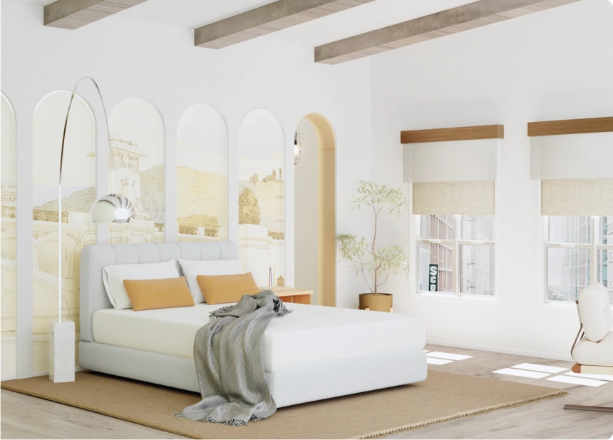 A quiet ease settles into this subdued palette, where soft, sun-washed hues and tactile, natural textures evoke a sense of calm. Linen-like weaves create an atmosphere that invites rest—an ideal companion to the rhythm of retreat after days filled with movement, light, and exploration.