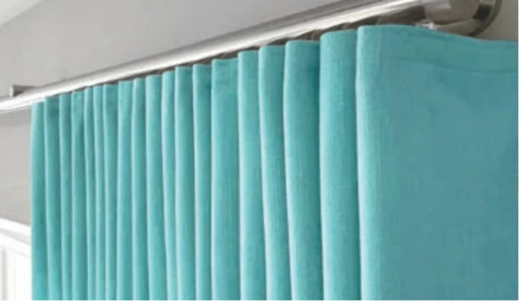 These are hung below the track on snaps and can be hand or cord-drawn. It can be a substitute to traditional partitions, and delivers a clean, uniform look front-to-back. It has the highest stacking depth of all header styles and easily breaks away from the tracking system, making it ideal for healthcare facilities.